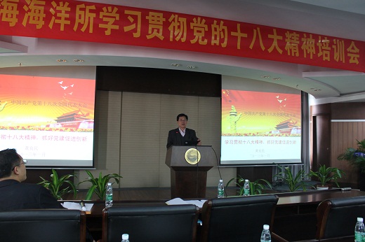 1月15日,中科院南海海洋研究所党委召开了“学习贯彻党的十八大精神培训会”,所党政领导班子成员、纪委委员、党支部正副书记及支部委员、文章作者等80多人参加。培训会由党委副书记、副所长詹文欢主持,党委书记黄良民作了专题辅导报告。