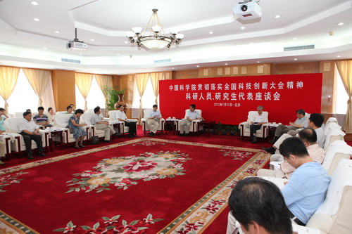 贯彻落实大会精神系列活动之一。中科院副秘书长潘教峰,中科院部分专家院士、中青年科学家及研究生代表出席了座谈会,座谈会由人事教育局副局长陈晓峰主持。