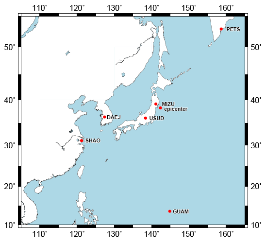 3月11日,日本仙台附近发生M9.0级大地震,并引发了海啸及核泄露等次生灾害。中科院测量与地球物理研究所地震与地球动力学学科组李军副研究员在震后利用收集到的IGS高频GPS站的数据,利用GAMIT等解算软件进行精密定位计算,获取了高频GPS监测到的形变位移信息,这些信息将为我们利用高频GPS联合地震波数据进行地震震源性质的研究以及大地震的破裂过程研究提供了大地测量的数据依据。