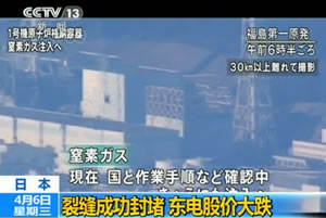 【国际时讯】裂缝成功封堵 东电股价大跌
