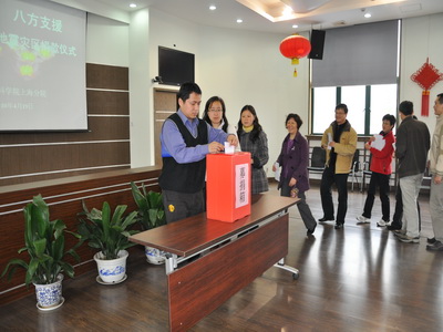 地震灾情牵动着中科院上海分院机关全体职工,灾情发生后,分院机关直属单位党委迅速发出倡议,近40名干部职工纷纷伸出援助之手,向青海玉树灾区捐款。