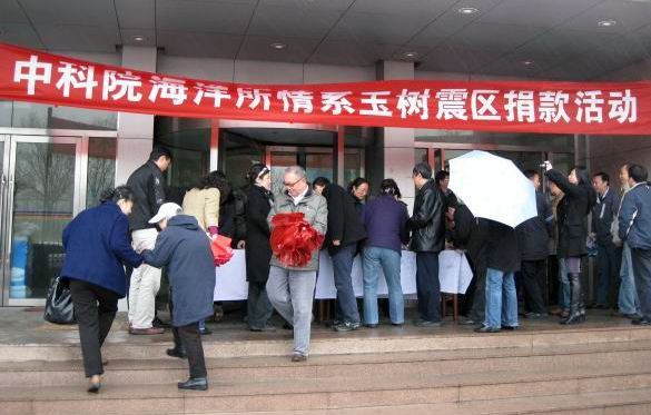 4月21日是青海玉树发生7.1级地震一周的日子,正是举国上下哀悼玉树地震遇难同胞的日子,中科院海洋研究所用最庄严的方式举哀——举行了“情系玉树震区献爱心”活动,一份份爱心捐款,承载着全所职工和研究生对玉树震区同胞的牵挂与祝福。