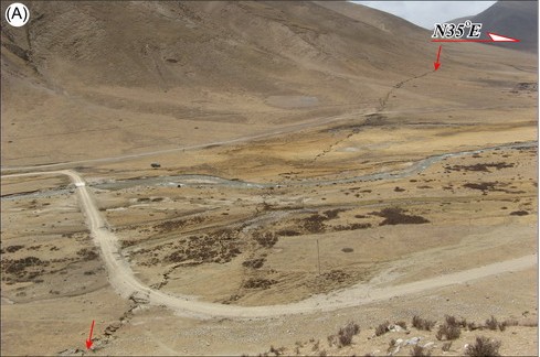 (照片中箭头所指为地震断层位置,付碧宏供图)