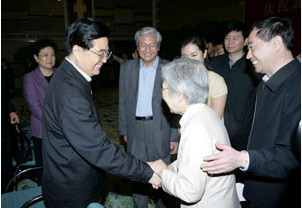 胡锦涛总书记在北大师生代表座谈会上与陈堃銶教授握手,表示亲切问候。