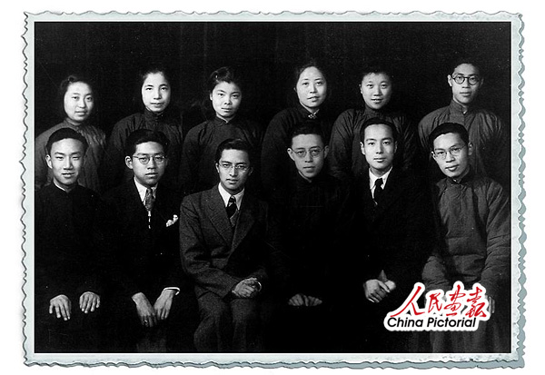 徐光宪(前排右二)与上海交通大学化学系的部分同学合影