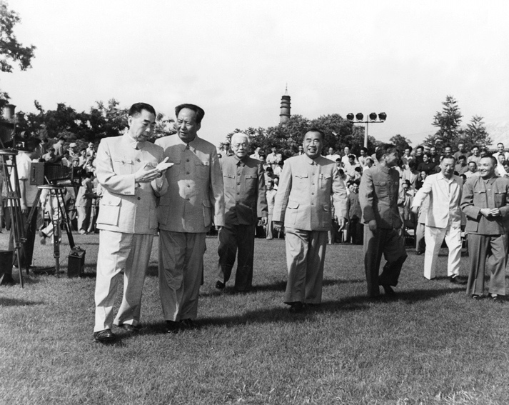 1956年6月14日,党和国家领导人毛泽东、周恩来、朱德、陈云、林伯渠、邓小平、聂荣臻等接见参加制定全国十二年科学技术发展远景规划的全体学部委员和科学家。