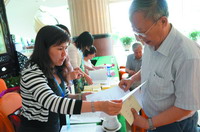 6月10日是两院院士大会报到日。图为中科院院士姚振兴在报到处领取会议资料。记者潘希摄