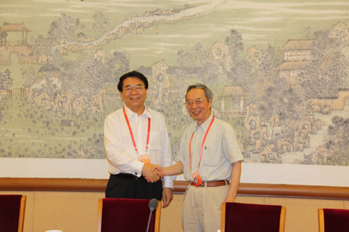化学部十四届常委会白春礼主任和十五届朱道本主任合影