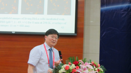 田禾院士作了题为“二噻吩乙烯多功能光致变色分子开关”的专题报告。光致变色材料尤其是二噻吩乙烯类材料作为理想的光控材料在一些领域中展现出巨大的应用前景和旺盛的生命力。报告中介绍了田禾院士近几年在二噻吩乙烯类体系的研究进展,包括,光致变色分子开关在多址分子存储与分子逻辑门领域的应用;具有离子识别能力的光致变色开关;光控自组装体系;具有门控光致变色性质的二噻吩乙烯类化合物;具有光致变色的多级分子机器;光致变色分子开关在生物体系中的应用;具有新型烯桥的二噻吩乙烯类化合物和光致变色界面材料等内容。同时,报告中还探讨了当前该领域存在的问题并对前景和发展方向进行了展望。