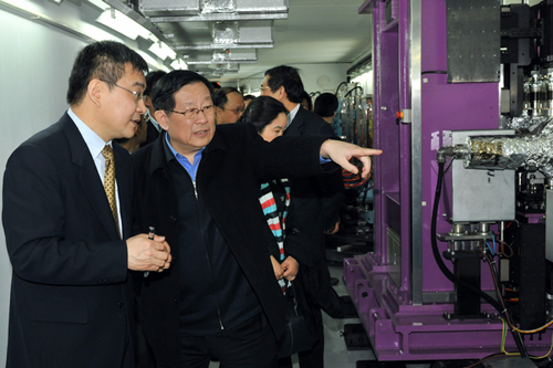 3月26日,全国政协副主席、科技部部长万钢一行赴中科院上海应用物理所张江园区视察上海光源。上海市科委主任寿子琪,中科院上海分院党组书记、常务副院长华仁长,中科院上海应用物理所所长、党委书记赵振堂等同志陪同视察。