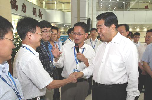 7月8日至12日,中共中央政治局常委、全国政协主席贾庆林在中共中央政治局委员、广东省委书记汪洋的陪同下,先后来到东莞、江门、广州等地,深入工厂企业、科研院所、市政建设一线,就加快转变经济发展方式、推动经济社会又好又快发展进行调研。