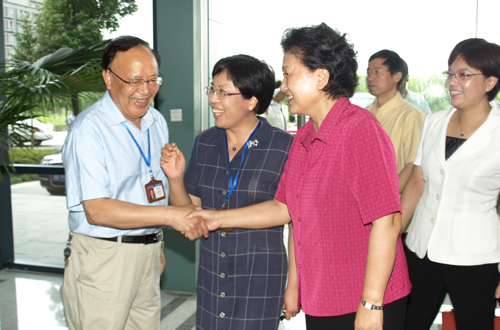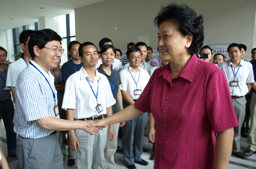与科研人员亲切握手
