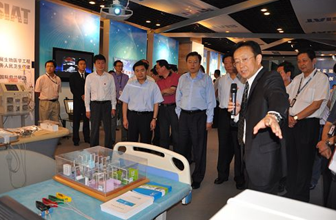 先进院院长樊建平首先介绍了先进院的基本情况,包括先进院的定位和目标、体制机制的创新、人才引进的举措、产业化的成果等。在科研成果展示区,樊建平对小Q机器人、智慧城市、神经假肢、CAE服务企业、磁悬浮风电机组、光伏太阳能、核磁、超声肝硬化仪等一批先进院成立以来的主要科研项目和成果一一汇报。在低成本健康展区,张德江希望加大研究开发与市场推广的力度。在电动汽车展示区,张德江特别指出,电动汽车是未来汽车的发展方向,也是我们国家的一个战略产业,前景十分广阔。他勉励科研工作者刻苦钻研,努力在电磁、电机和电控这三个涉及电动汽车的关键技术上能取得突破性成果。