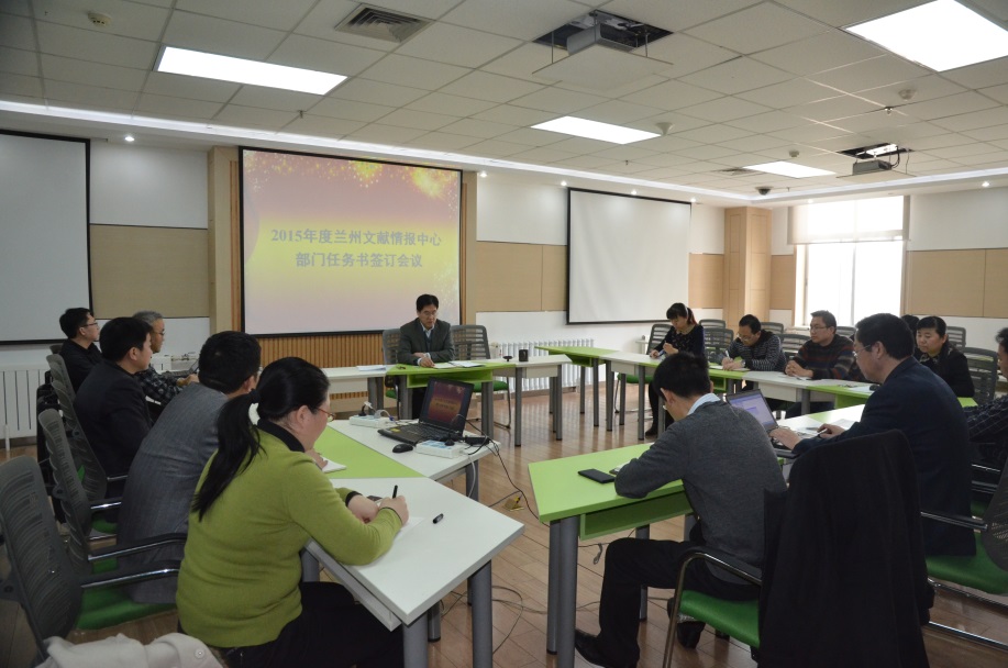 兰州文献情报中心召开2015年工作计划动员部署及部门任务书签订会,全面部署抓实2015年度工作计划。中心领导以及部门负责人参加了会议。会议由党委书记姬贵林主持。