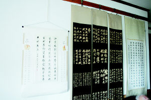 走进钱老的家,客厅里迎面是王羲之《兰亭序》的拓片,对面的墙上,则是两联老人自书的草书,分别为苏东坡的《赤壁赋》和《后赤壁赋》,写时虽已是86岁高龄,但其字质朴有法,足见钱老深厚的书法功底。虽然是德高望重的老院士,但环顾四周,摆设十分简朴。看着书桌上的毡垫和笔墨,记者问钱老:“您还写字吗?”老人笑着摆摆手:“年纪大了,不写了。”此时,记者却仿佛看见几十年前的江南小镇上,一个正在习字的少年的身影……