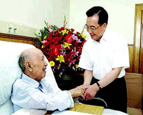 温家宝与钱学森亲切交谈