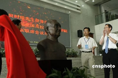 2008年9月14日,目前国内唯一健在的1984年中央研究院院士贝时璋的塑像在中国科技大学生命科学学院揭幕。中新社发张娅子 摄