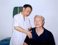 杨弘远正在接受点穴专家的理疗