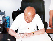 庄逢甘伏案题字