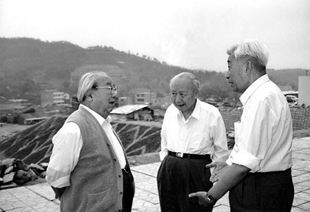 钱伟长(中)与费孝通丁石孙考察