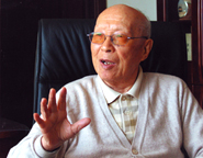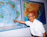 王鸿祯(左二)听登山英雄、地大毕业生李致新、王勇峰汇报登上世界七大...