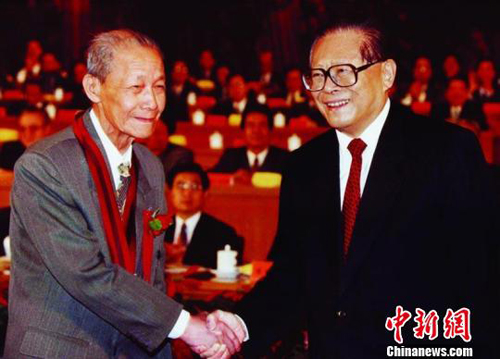 1999年,江泽民向黄纬禄颁发“两弹一星”功勋奖章
