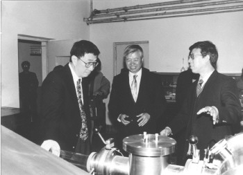 蒋民华院士与丁肇中教授在晶体所实验室