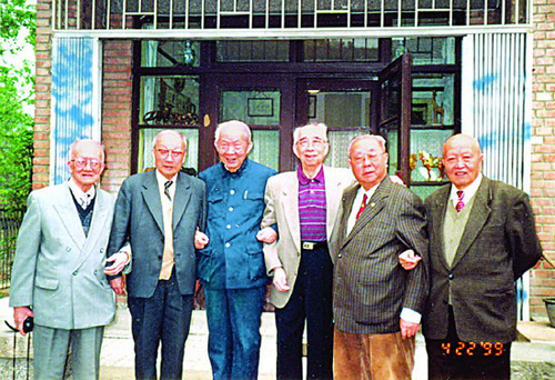 六院士合影。左起:罗沛霖、王大珩、张光斗、侯祥麟、张维、师昌绪。