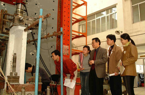周锡元在指导学生做实验。