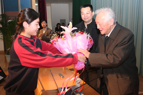 师大附中学生为陈梦熊院士献花