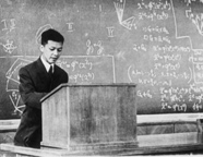 谷超豪在莫斯科大学科学博士论文答辩会上作报告。(1959年)