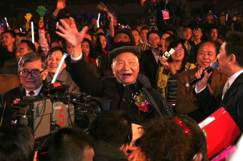 在庆祝兰州大学建校100周年文艺晚会上接受采访