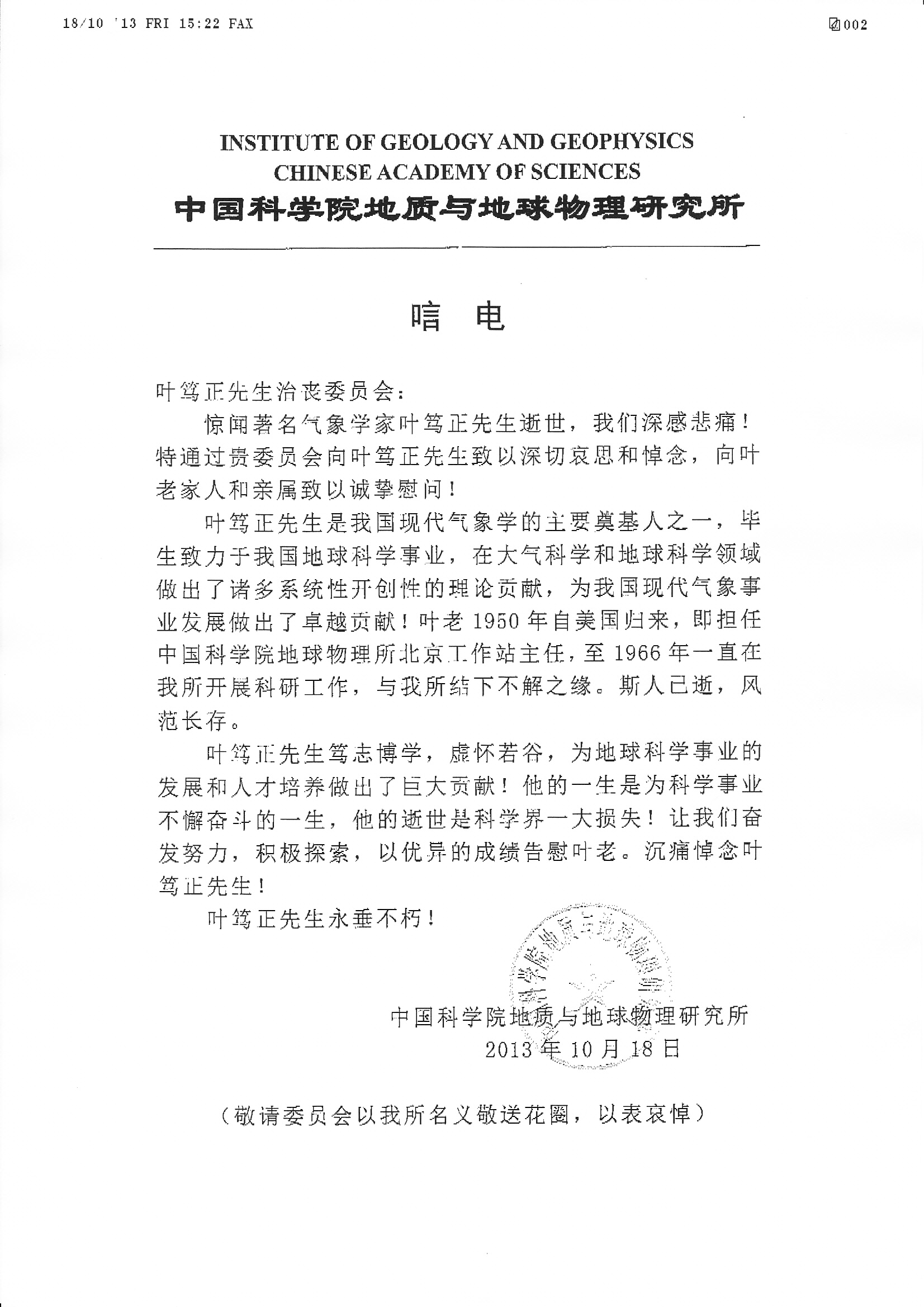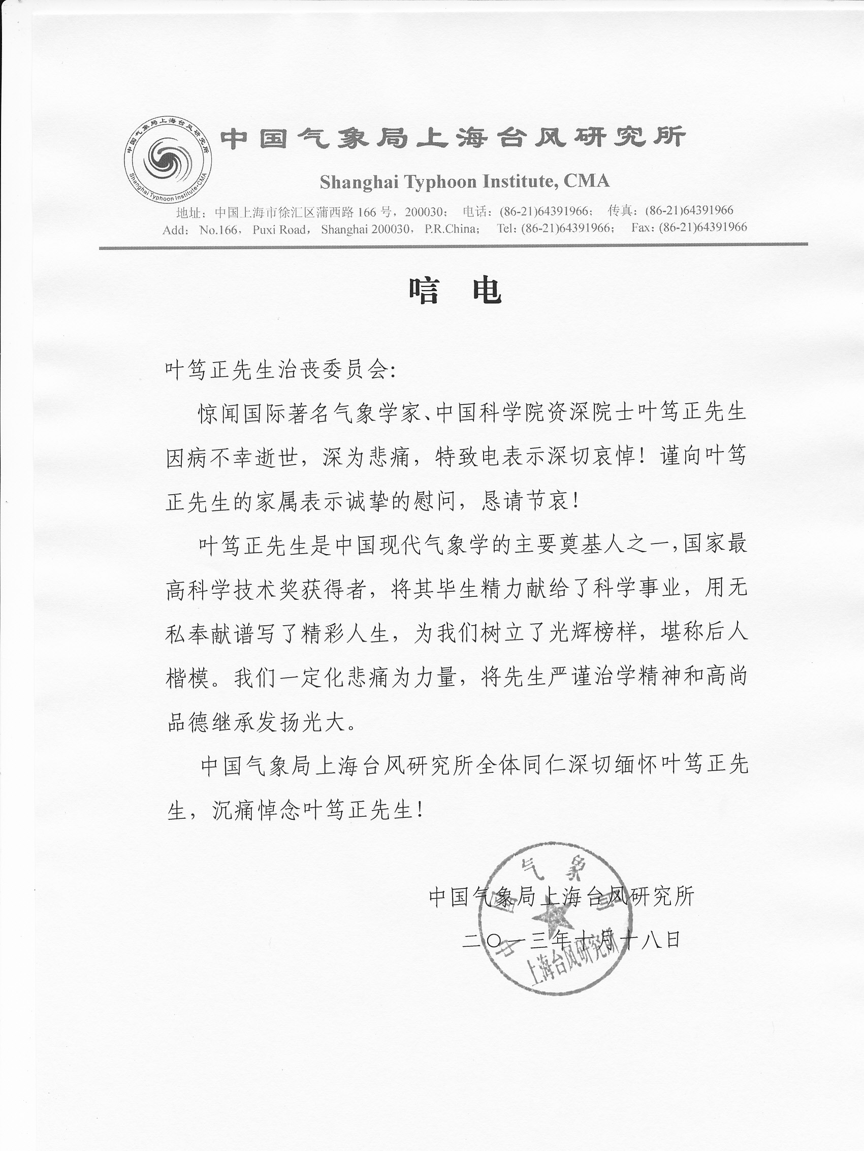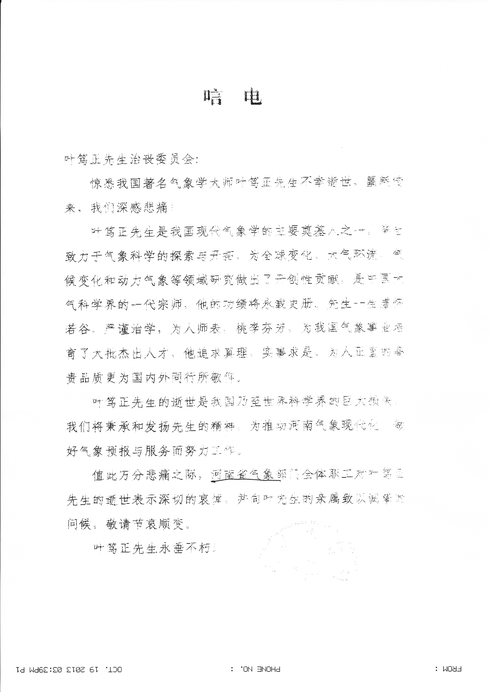 唁电