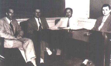 在加州理工学院担任喷气推进中心主任的钱学森与同事合影