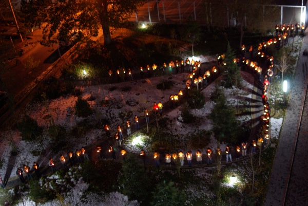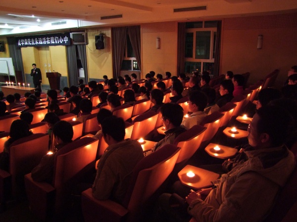 活动最后,大家冒着严寒,手捧蜡烛聚集到综合楼前摆出了一个“力”字造型,以纪念钱学森先生对祖国力学事业的卓越贡献;烛光,象征着生命之光,表达了大家对钱学森先生的哀思,更表达出年轻一代的心声——钱学森先生永远活在我们心中。