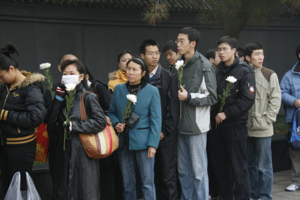 9时许在八宝山革命公墓内,已经有很多自发前发往悼念的公众排起了长队
