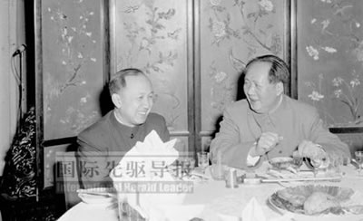 1956年2月1日,全国政协二届二次会议的宴会上,毛泽东主席和钱学森谈话。