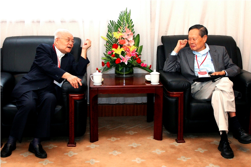 2006年,吴文俊荣获邵逸夫数学科学奖,图为杨振宁与吴文...