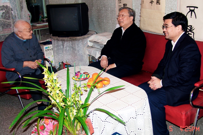 2009年,时任中科院院长路甬祥和数学院院长郭雷看望吴文俊