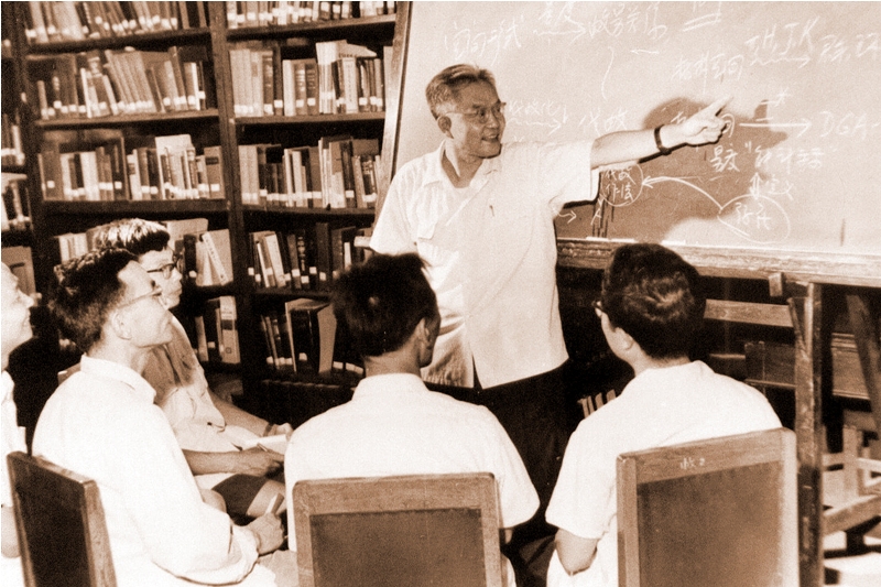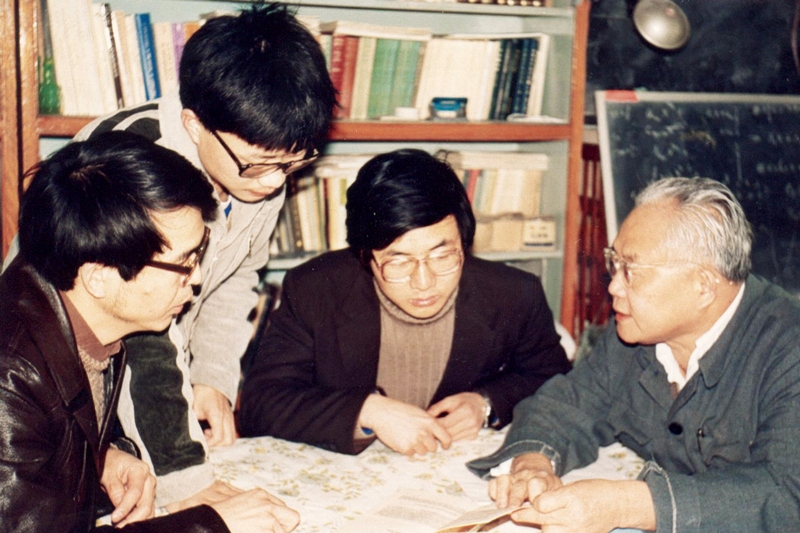 1985年,吴文俊与学生王东明、李子明、刘卓军讨论问题