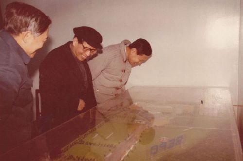 1986年,陪同杨振宁(右)参观北京正负电子对撞机模型,左一为叶铭汉