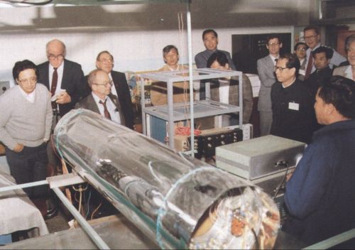 陪同外国专家考察北京谱仪主漂移室的建造情况