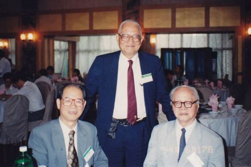 1994年,在北京召开的加速器会议期间与王淦昌(右)、陈耀华(中)合影留念