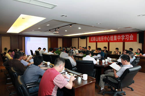 7月19日,中科院成都山地灾害与环境研究所组织召开中心组集中学习会,传达学习习近平总书记在中科院考察工作时的重要讲话以及院党组2013年夏季扩大会议主要精神。中心组全体成员参加了学习,党委书记关晓岗主持学习会。